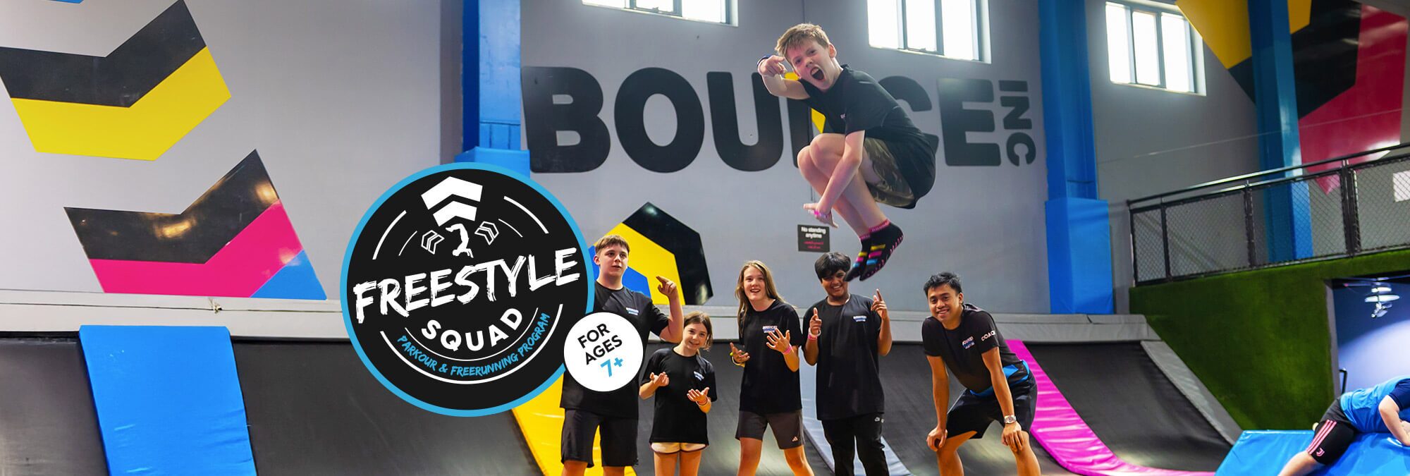 Freestyle Squad kids score a Freestyle Academy T-shirt and bag, a journey map, and a free hour of jump time every week (Monday to Thursday). Because progress doesn’t stop when class ends.